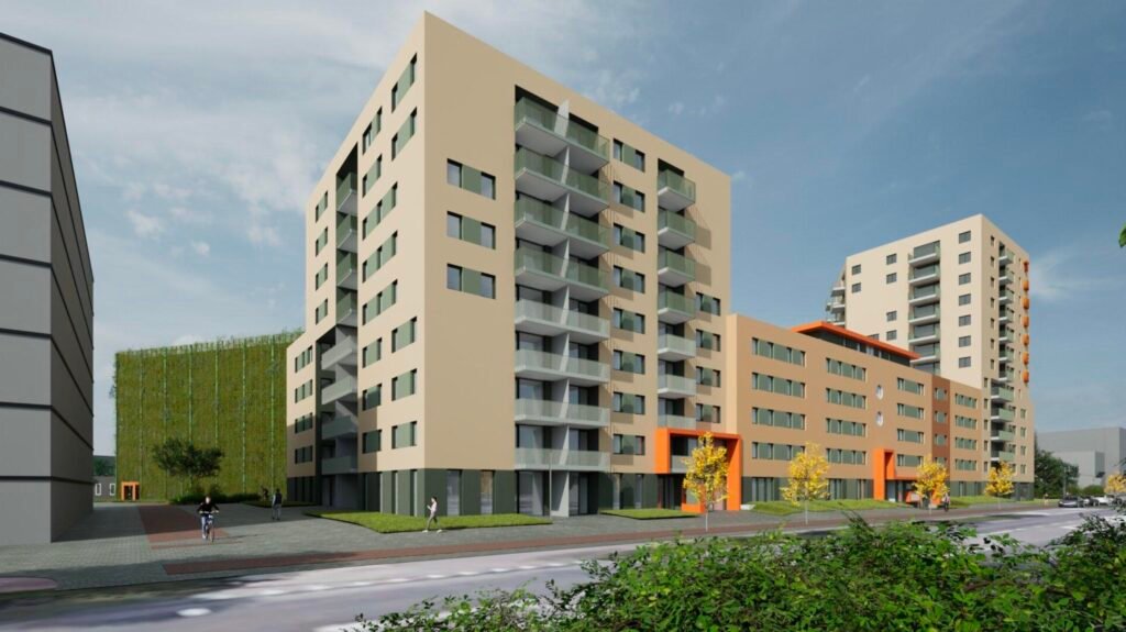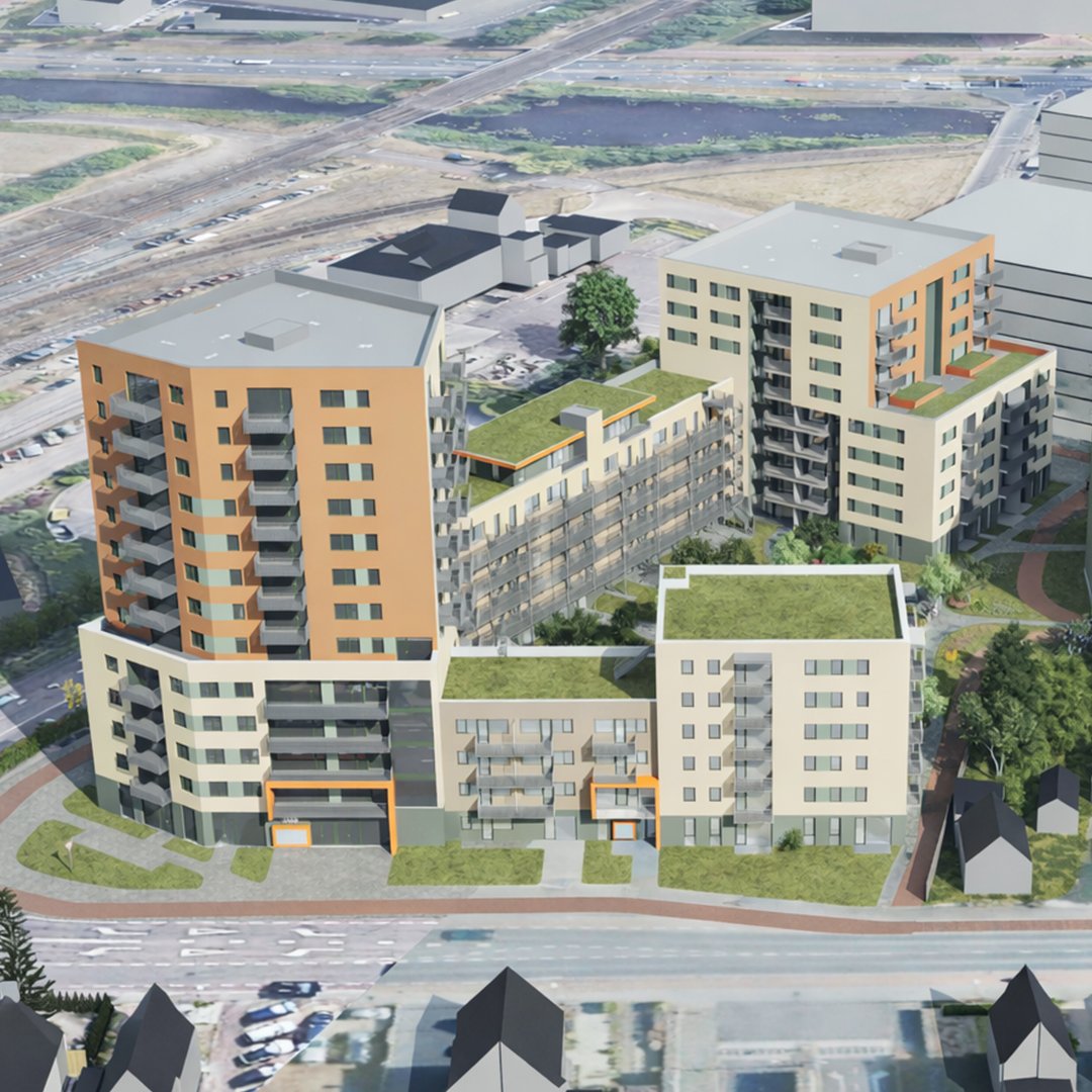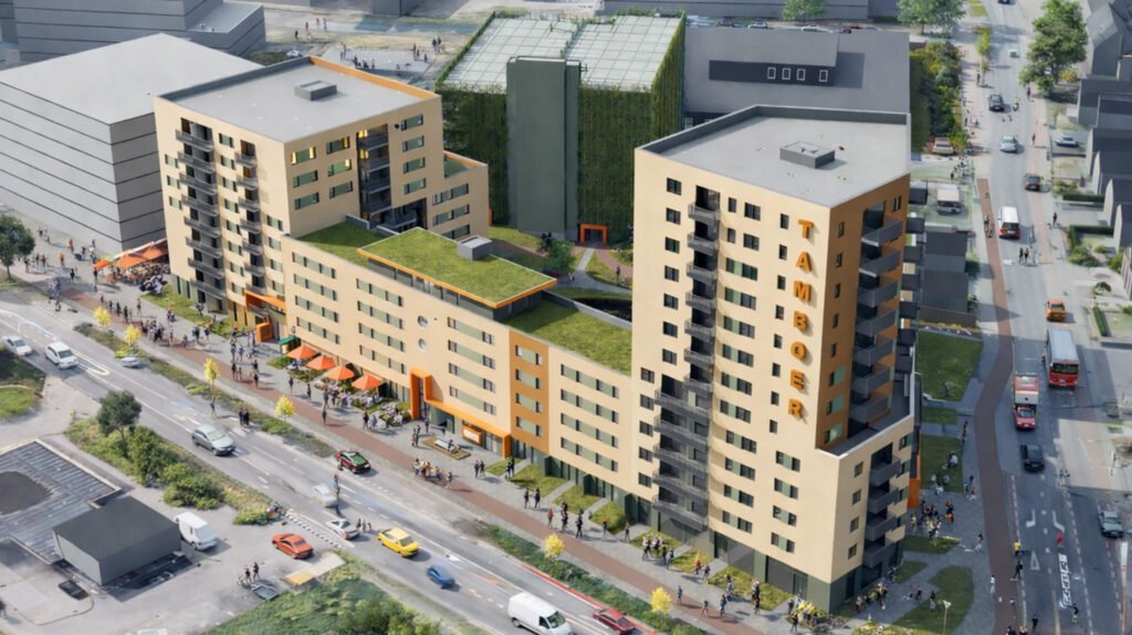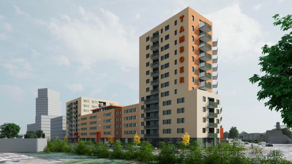 Kayersmolen Noord is de nieuwste buurt in Apeldoorn. Op een prachtige locatie gelegen aan de rand van het centrum van Apeldoorn naast het centraal station dichtbij alle voorzieningen. Het gebied dat voorheen een industrieterrein was, wordt de komende jaren getransformeerd naar een schitterende duurzame, groene wijk. Vol trots kunnen wij dan ook zeggen dat op de hoek van de Kayersdijk en Laan van de Mensenrechten het appartementencomplex Tamboer gerealiseerd zal worden. 226 betaalbare en energiezuinige appartementen met een hoogwaardige afwerking in moderne architectuur. Daarnaast zijn er 2 commerciële ruimten en een bovengrondse parkeergrage. De architect van het plan, George Blom van Blom International, heeft gezorgd voor een eenheid in verscheidenheid met diverse woningtypes, alsook verschillen in massaopbouw. Daarbij is gekozen voor verschillende gevelafwerkingen waardoor duidelijk te zien is dat het aparte woonblokken zijn dat toch een ensamble vormt van het geheel. Tussen de appartementen en de parkeergarge komt een parkachtige tuin waar je lekker buiten kunt zijn, spelen, bewegen of gewoon vanaf een bankje van de omgeving kunt genieten.